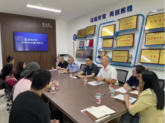 9月29日,国际教育学院召开来华留学生安全警示教育大会。学院党委书记王冬坡、赵佗路派出所警官高春萌、来自学校安全工作处、新闻与文化传播学院等教师代表、以及全体留学生参加本次会议。